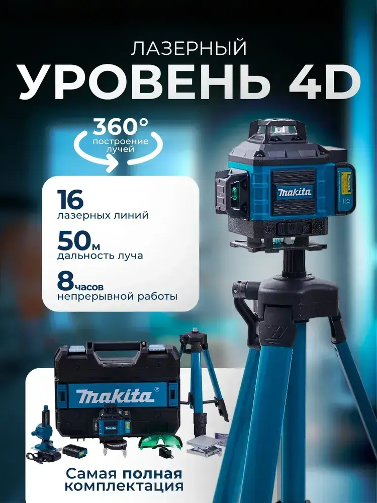 Лазерный уровень нивелир Makita 4D 16 линий 360 градусов со штативом, откалиброван, Профессиональный лазерный уровень самовыравнивающийся строительный