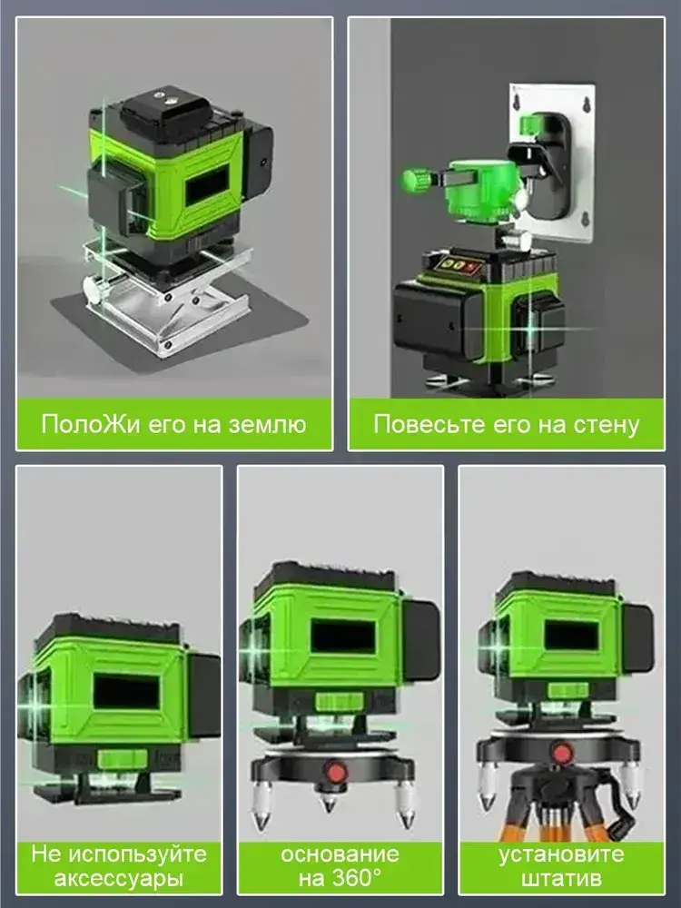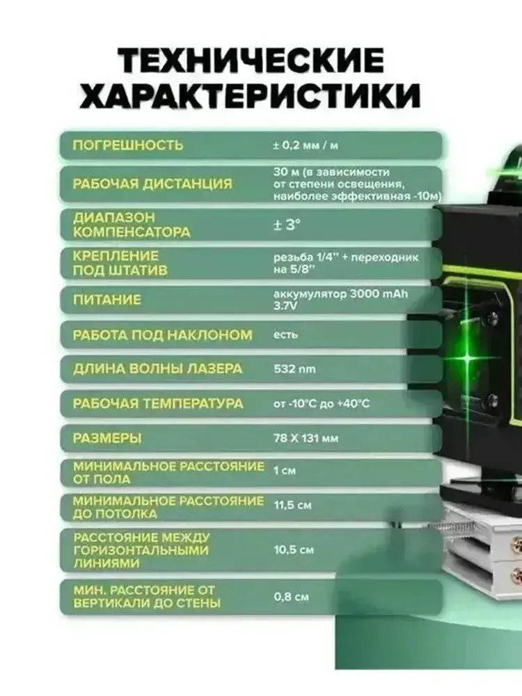 Лазерный уровень нивелир,4D/8 линий,Защита от перегрева,Супер яркий луч лазера,1 литиевая батарея емкостью 6800 мАч,Зеленый луч уровень 360 град,Водонепроницаемое пылеудаление