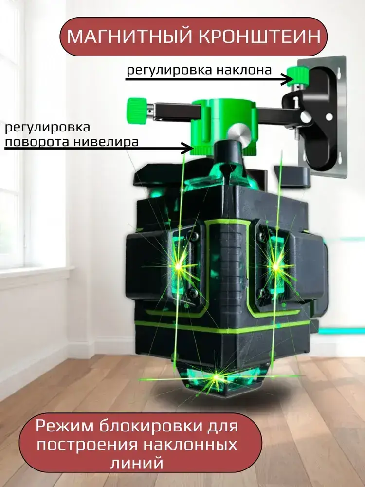 Лазерный уровень/нивелир с дисплеем Hilda 4d 16 линий зеленый луч полный комплект