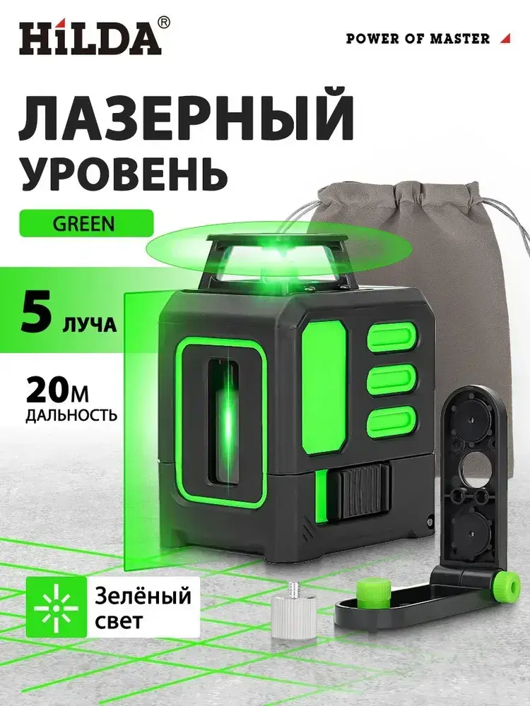 Лазерный уровень,нивелир Зеленыйлуч, HilDA 5 линии
