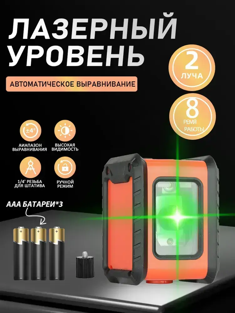 Лазерный уровень/нивелир Зеленыйлуч,2 линии ААА*3