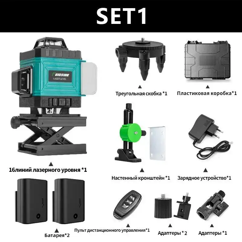 Лазерный уровень/уровень лазерный 360 градусов, 16 Линий, 2 Батарейки, зеленый луч