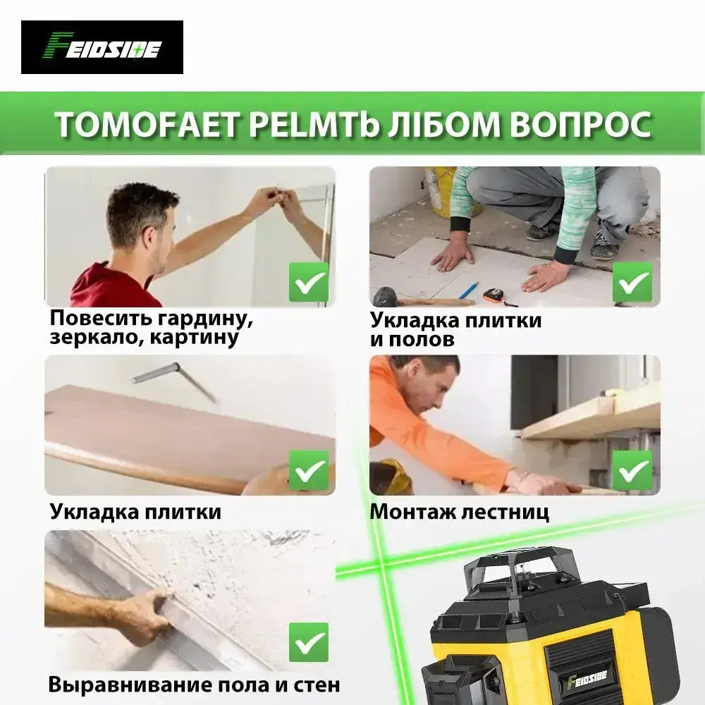 Лазерный уровень,Зеленый луч,4D 16 Линий,Дисплей заряда батареи,2 Батарейки Комплект