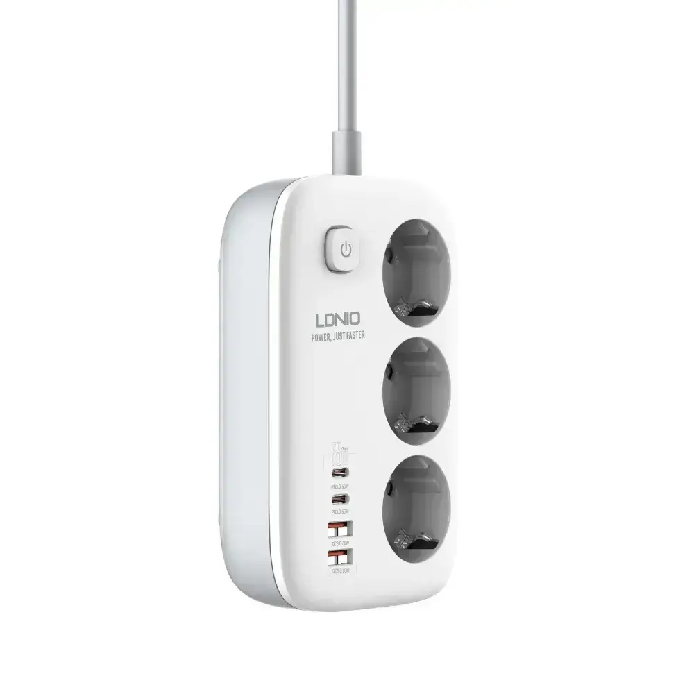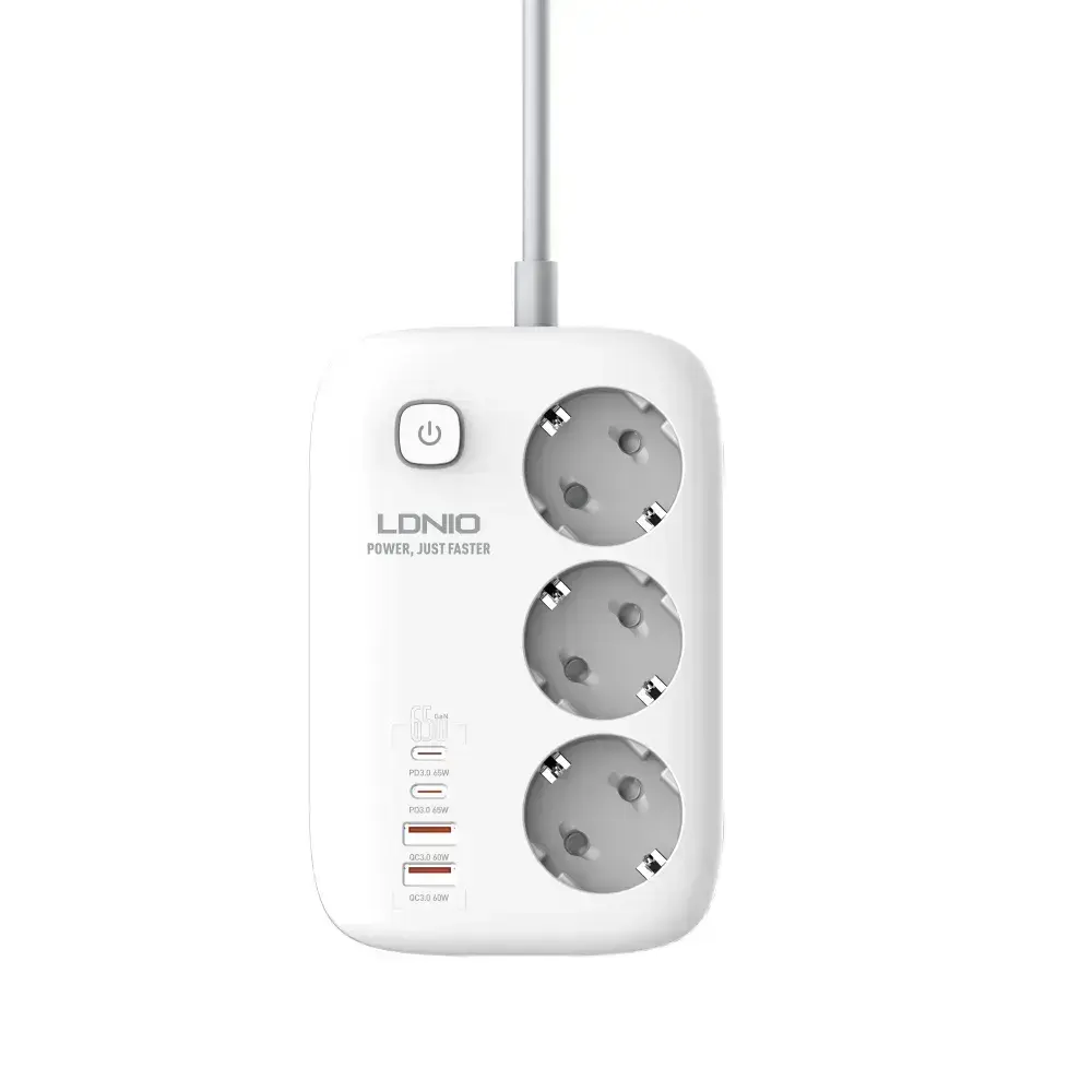 LDNIO удлинитель сетевой фильтр SE3436 2 метра 4 USB GaN 65W белый, тройник разветвитель с заземлением и выключателем