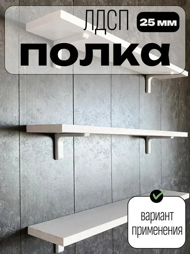 ЛДСП 25 мм Полка мебельная 610*250 мм цвет Белый