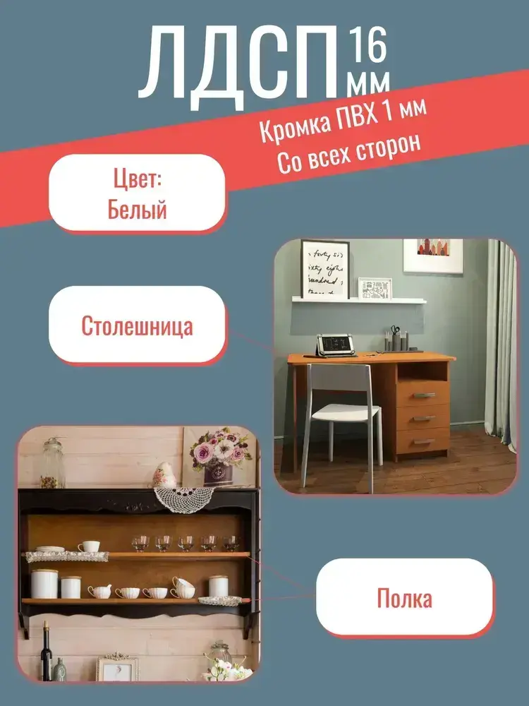 ЛДСП Мебельная деталь 450*760 мм цвет Белый 16 мм