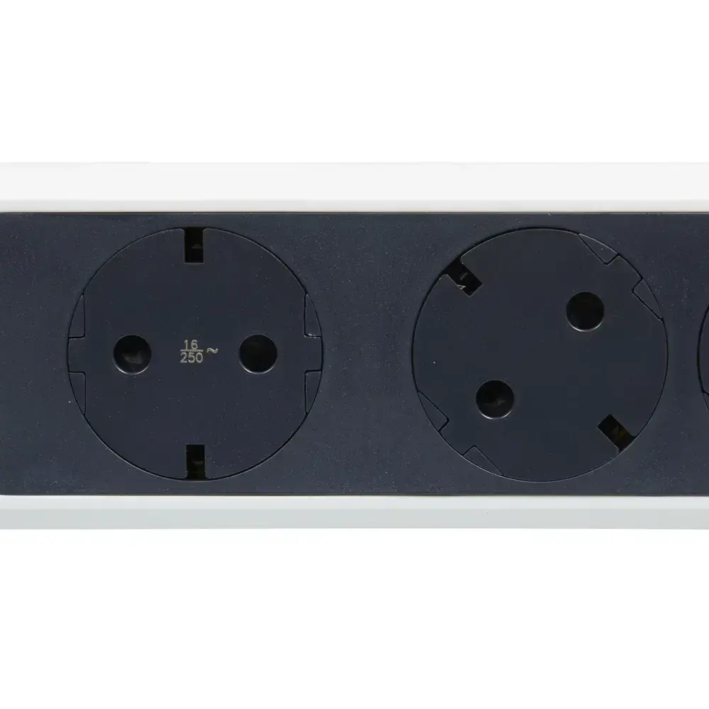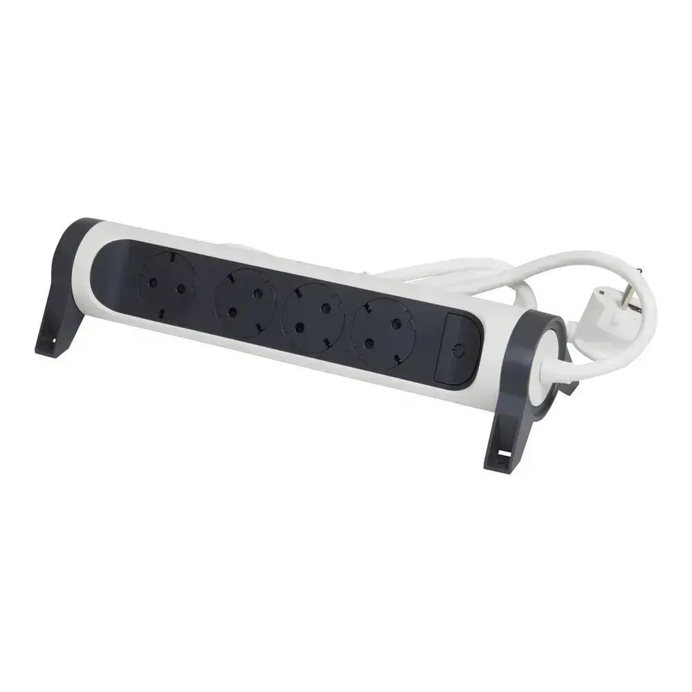 Legrand Revolution Комфорт Бело-черный Удлинитель 4x2К+З с выкл., кабель 1,5м, плоские розетки, фиксируемый поворотный блок, 694529