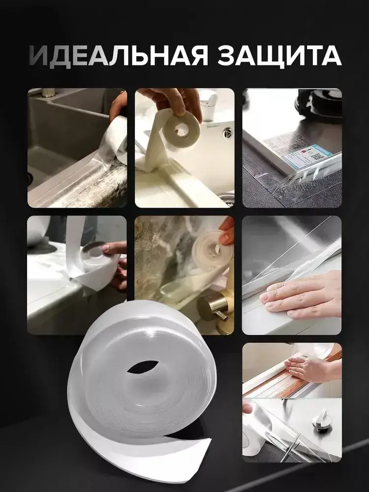 Лента бордюрная прозрачная для раковины, мойки, кухни, ванны, санузла, водонепроницаемая самоклеящаяся 50мм 5м.