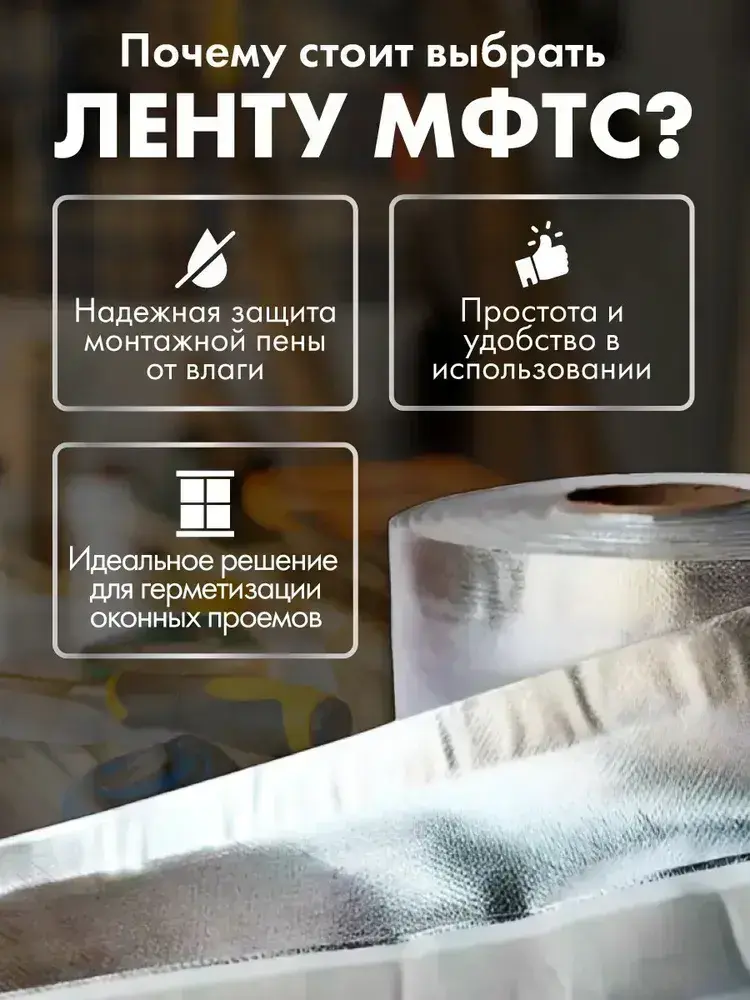 Лента для окон монтажная МФТС 100мм 24 м самоклеящаяся пароизоляционная Руфизол