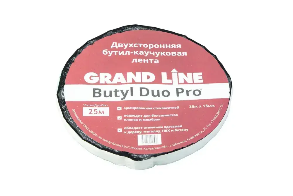 Лента двухсторонняя бутил-каучуковая соединительная Grand Line BUTYL DUO PRO 15мм х 25м