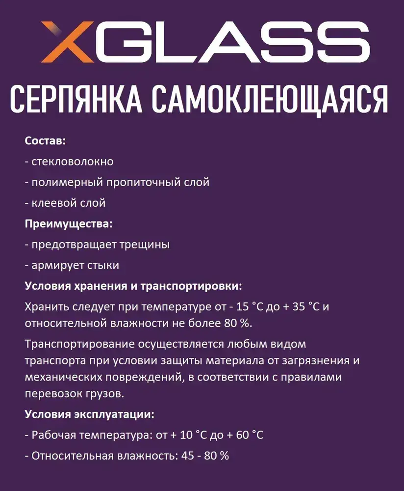 Лента серпянка стеклотканевая самоклеящаяся 150мм х 20м XGLASS