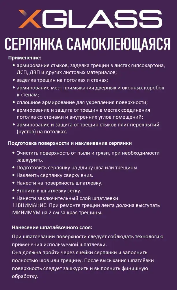 Лента серпянка стеклотканевая самоклеящаяся 50мм х 45м XGLASS
