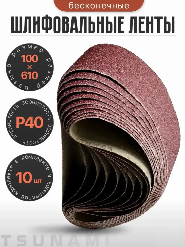 Лента шлифовальная бесконечная 100х610 Р40 10 шт. TSUNAMI