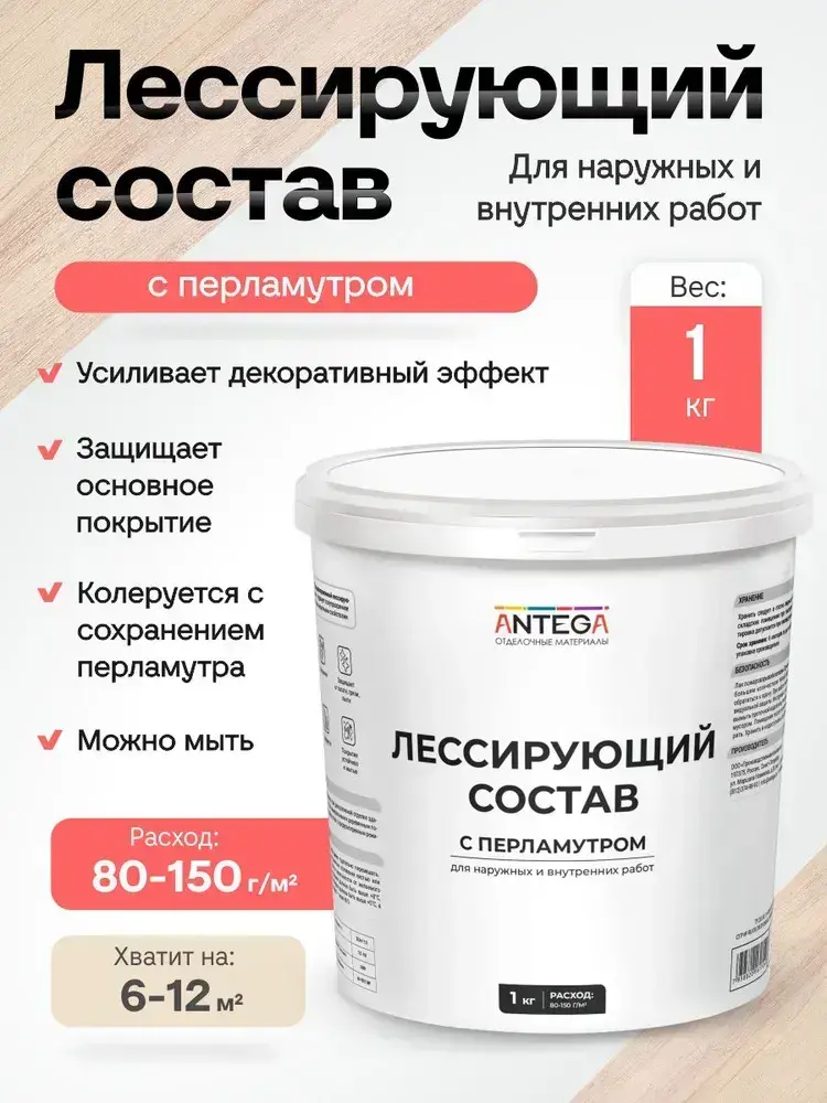 ЛЕССИРУЮЩИЙ состав, 1 кг, с перламутром, водно-дисперсионный, универсальный, Антега