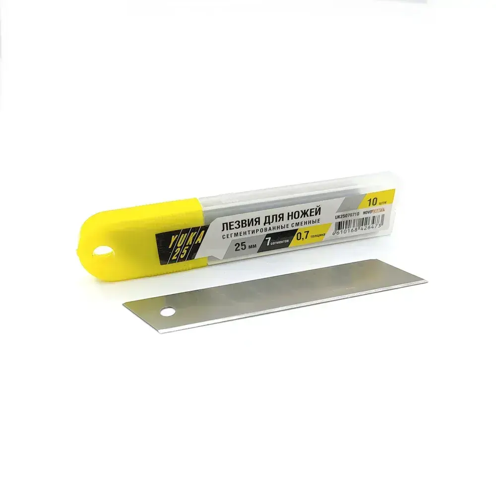 Лезвия для ножа 25 мм YUKA25 7 сегментов, 0,7 мм, уп. 10 штук