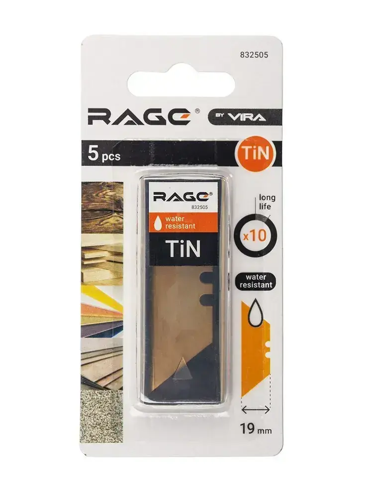 Лезвия для ножей трапециевидные 19 мм с титановым покрытием 5 шт RAGE by VIRA