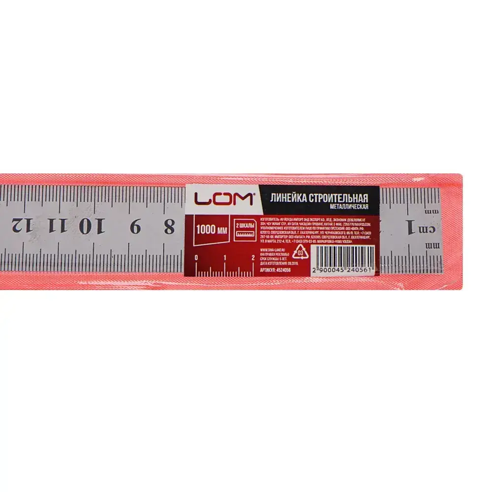 Линейка измерительная ЛОМ, металлическая, 1000 мм