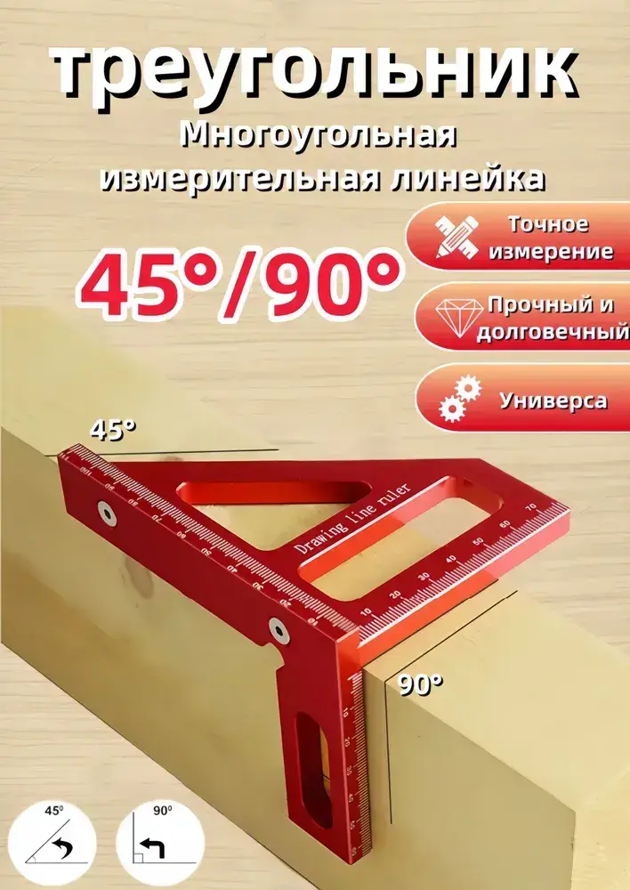 Линейка/угольник 112мм х 79мм, /45 90,Угольник столярный, треугольник строительный металлический,Алюминий