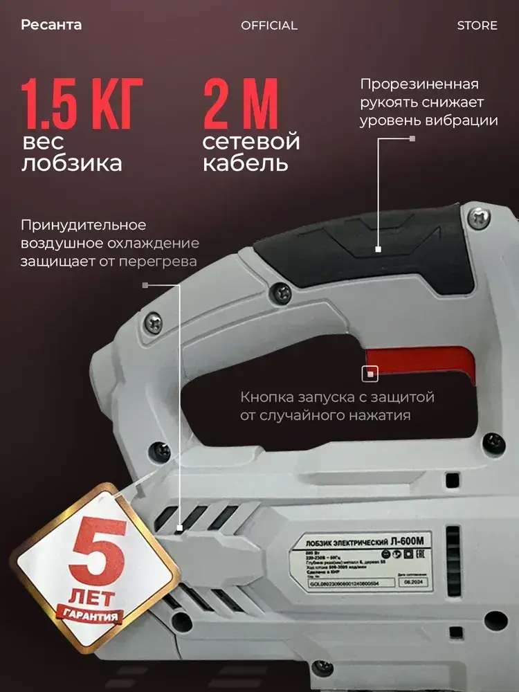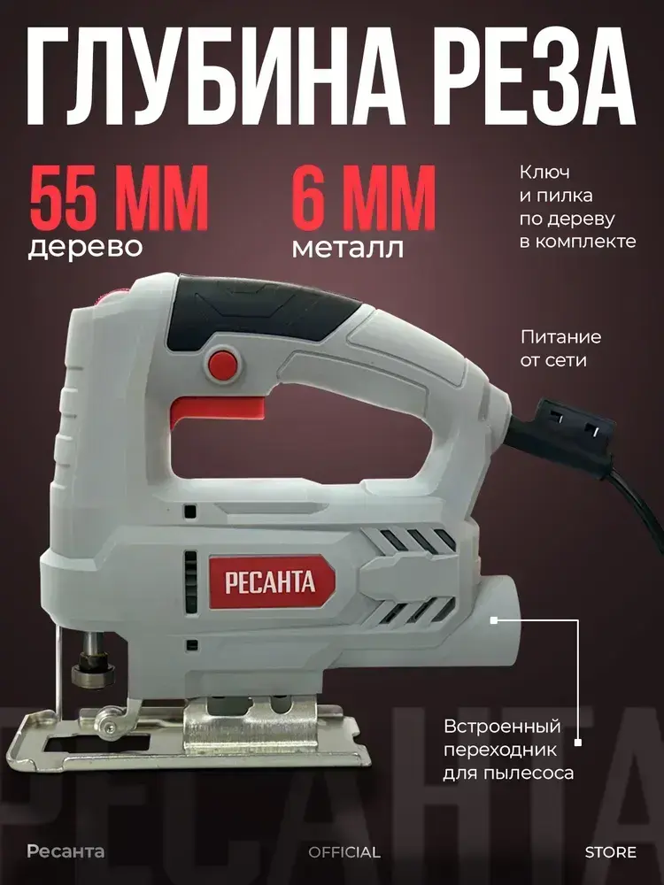 Лобзик электрический Л-600М Ресанта - 600 Вт, глубина пропила до 55мм, ГАРАНТИЯ 5 лет