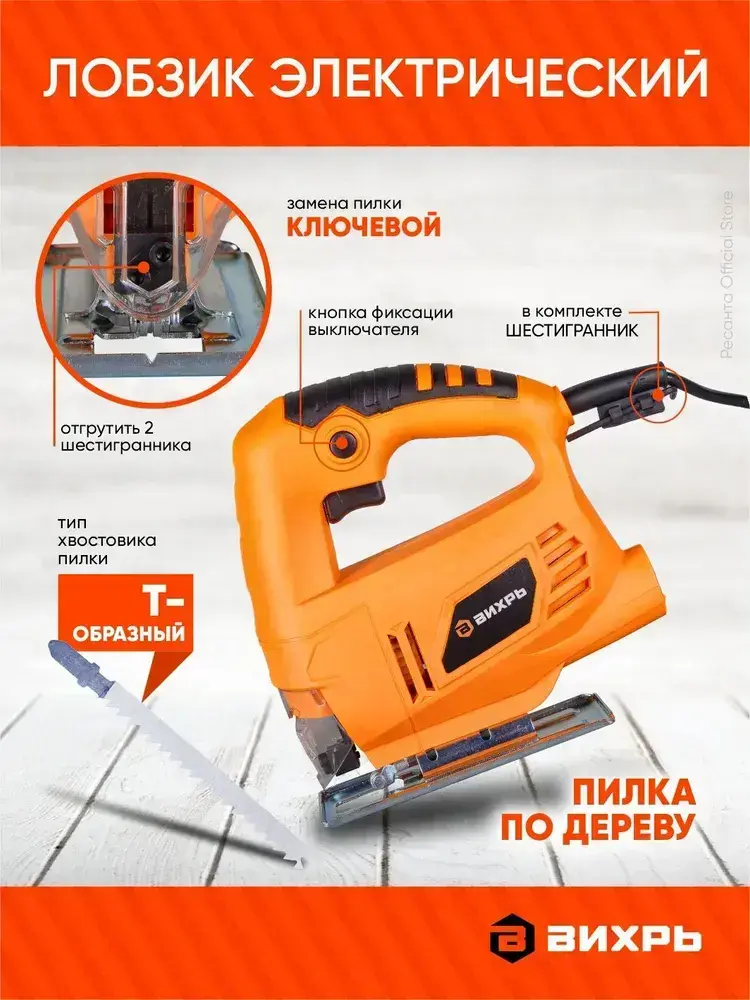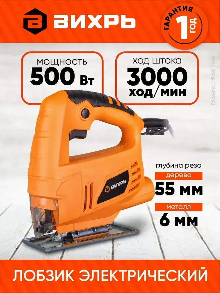 Лобзик электрический ЛЭ-6,0Б Вихрь - 500Вт, до 55мм, без регулировки оборотов