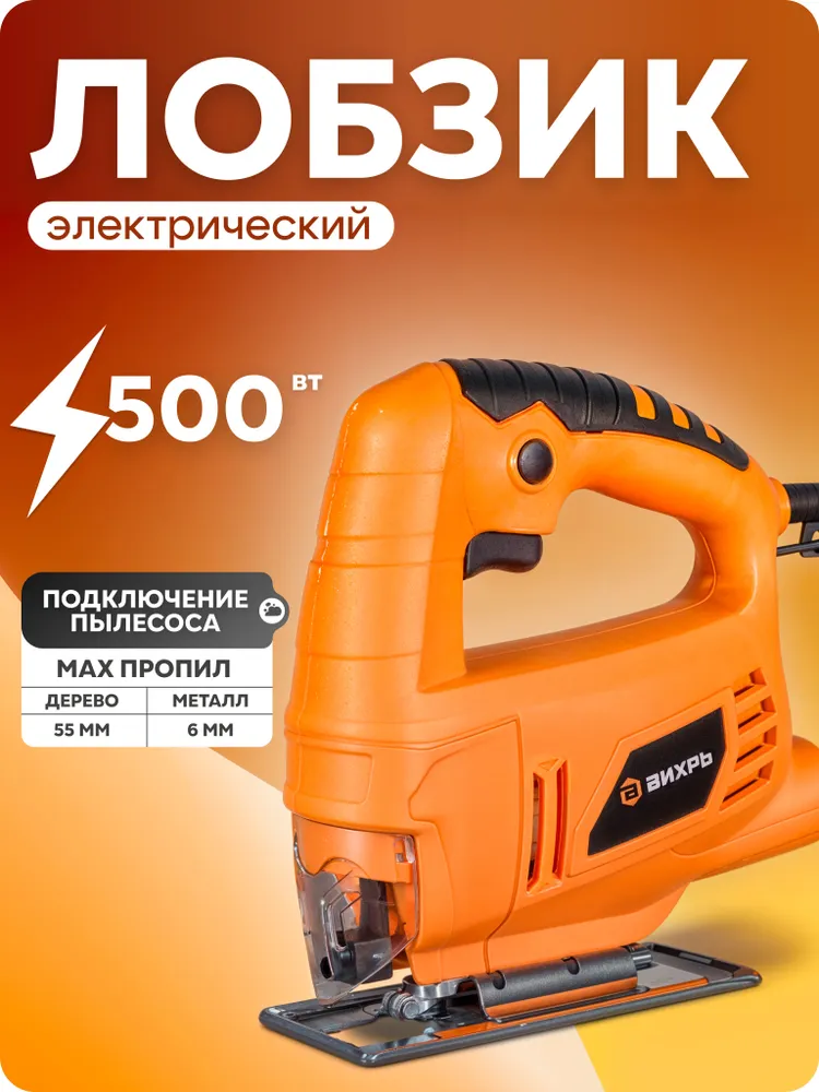 Лобзик электрический Вихрь 500 Вт / электролобзик : по дереву 55 мм; по металлу 6 мм