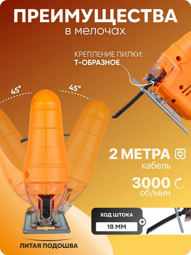 Лобзик электрический Вихрь 600 Вт / электролобзик : по дереву 55 мм; по металлу 6 мм
