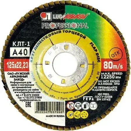 LUGAABRASIV Круг лепестковый торцевой 125 x 22.23; A40