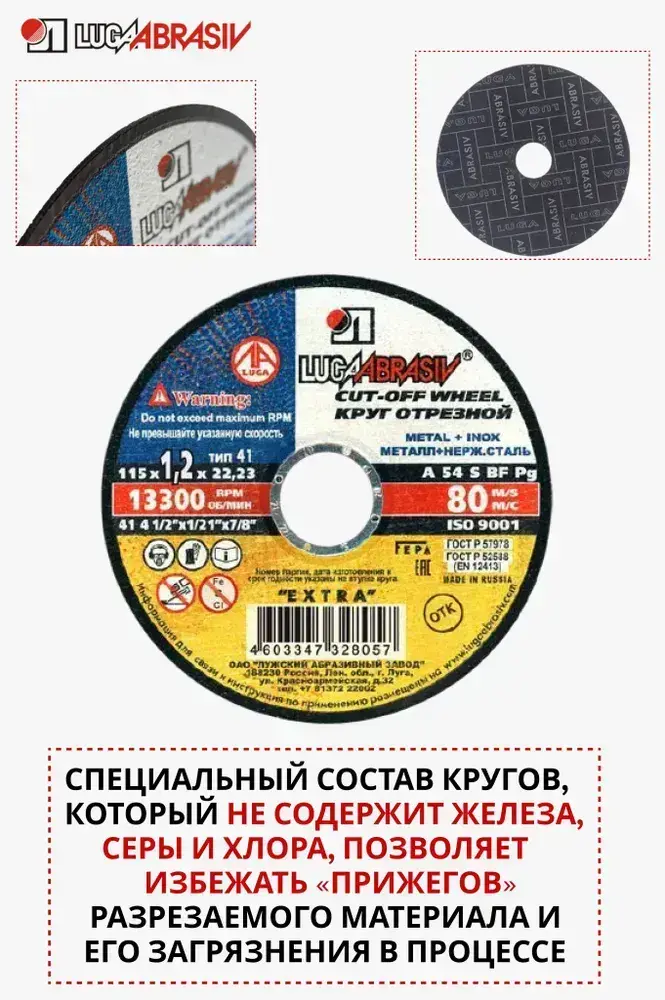 LUGAABRASIV Круг отрезной 115 x 1.2 x 22.23
