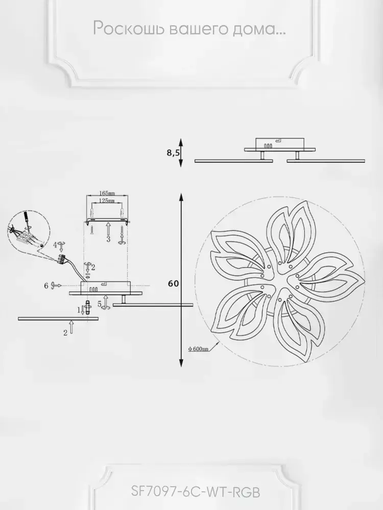 Люмьен Холл люстра потолочная светодиодная с пультом светильник регулируемая LED белая для спальни SF7097/6C-WT-RGB