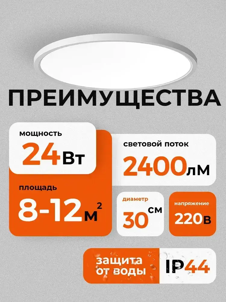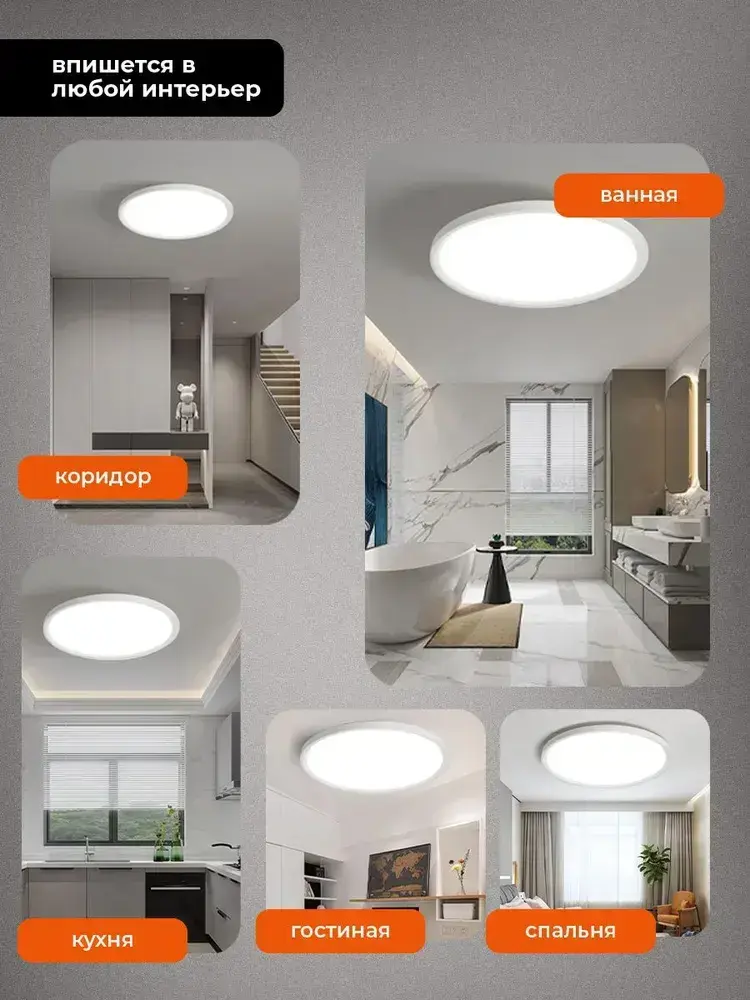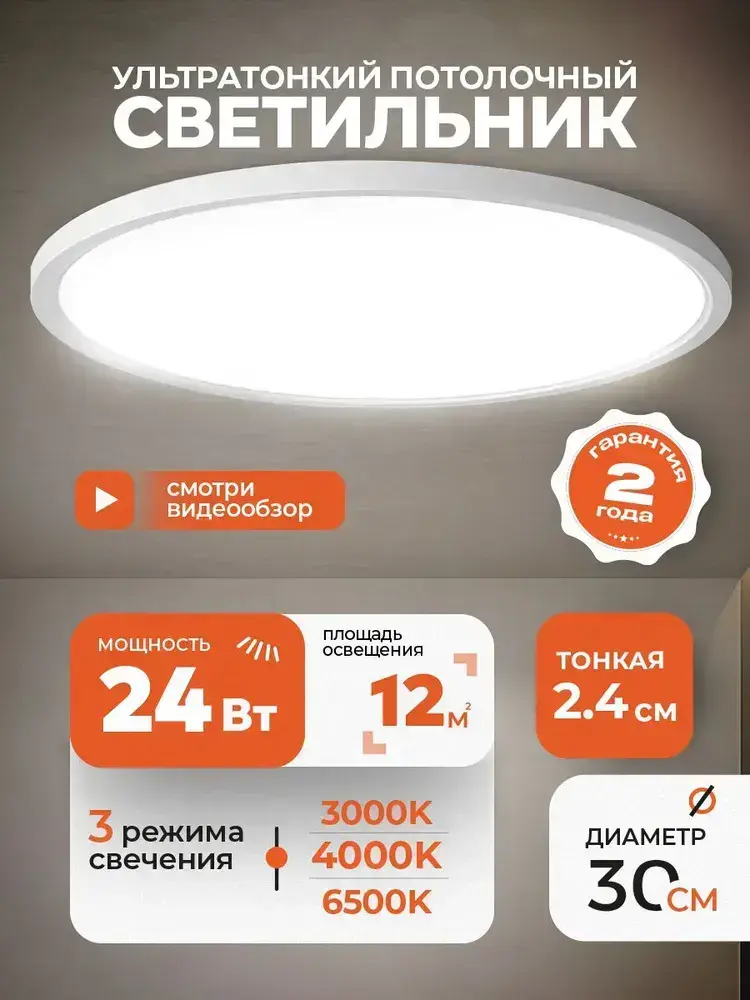 Люстра потолочная светодиодная Maghome 3000K/4000K/6500K, 24Вт, 30cm, 2.4cm толщиной ,белый