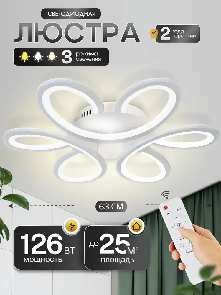 Люстра потолочная светодиодная с пультом 1718/3, люстра на кухню 126Вт