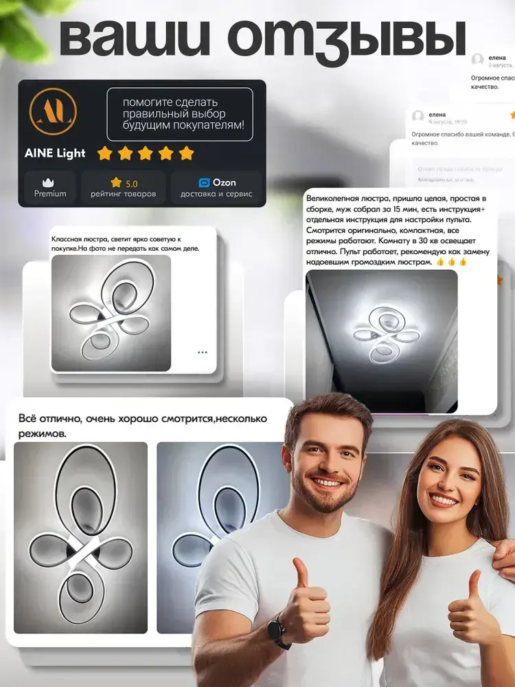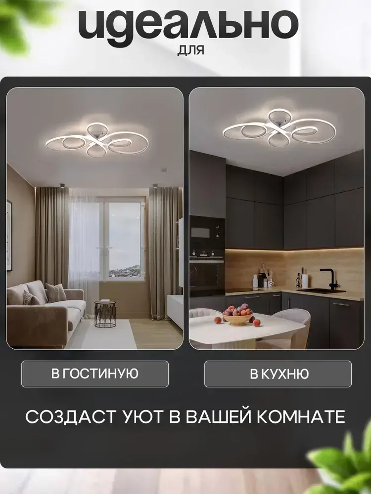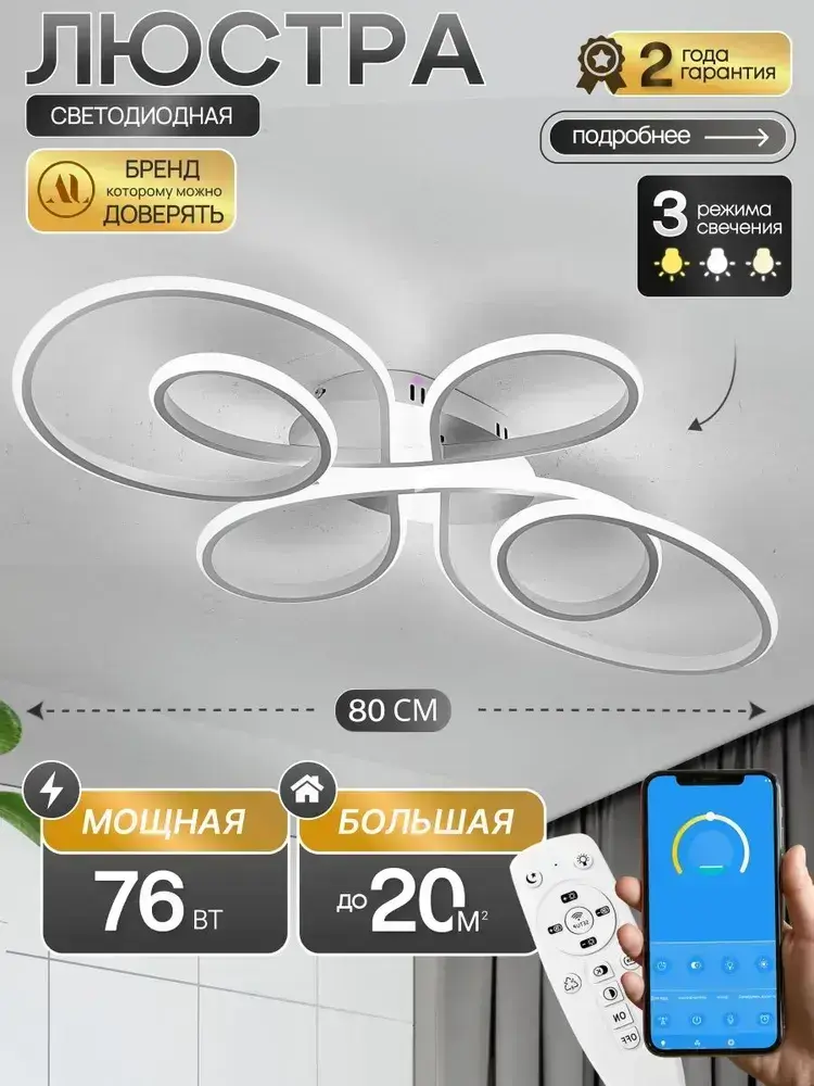 Люстра потолочная светодиодная с пультом 3796/800 WT, светильник потолочный 76Вт