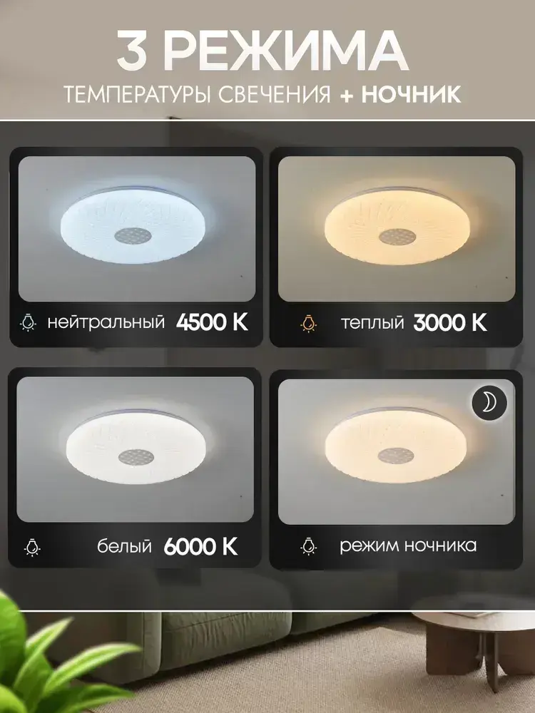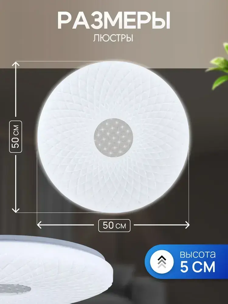 Люстра потолочная светодиодная с пультом 8842/500, потолочный светильник на кухню 120Вт