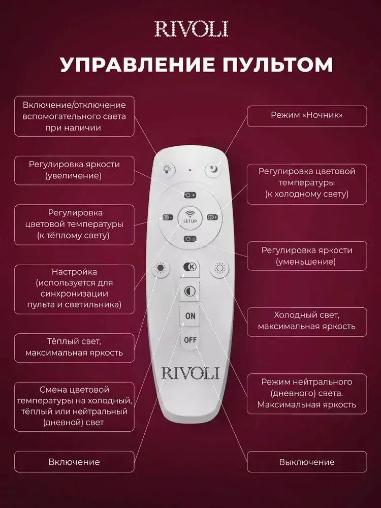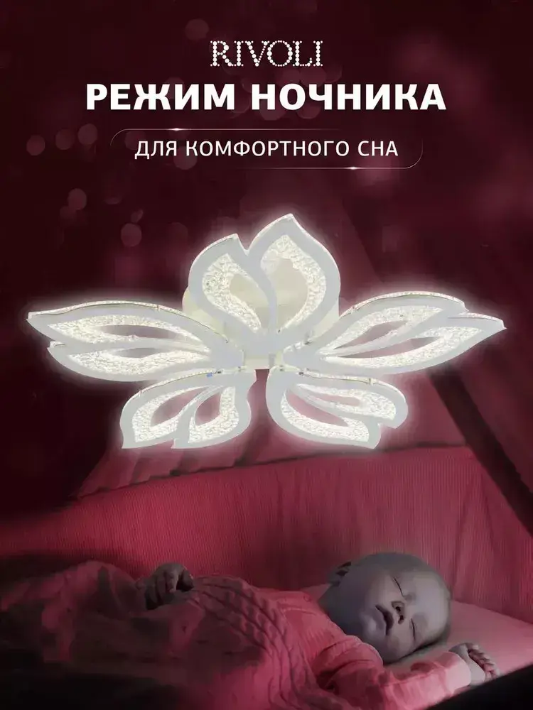 Люстра потолочная светодиодная с пультом ДУ Rivoli белая 110 Вт, 3000К - 6000К, светильник на кухню, в детскую, в спальню