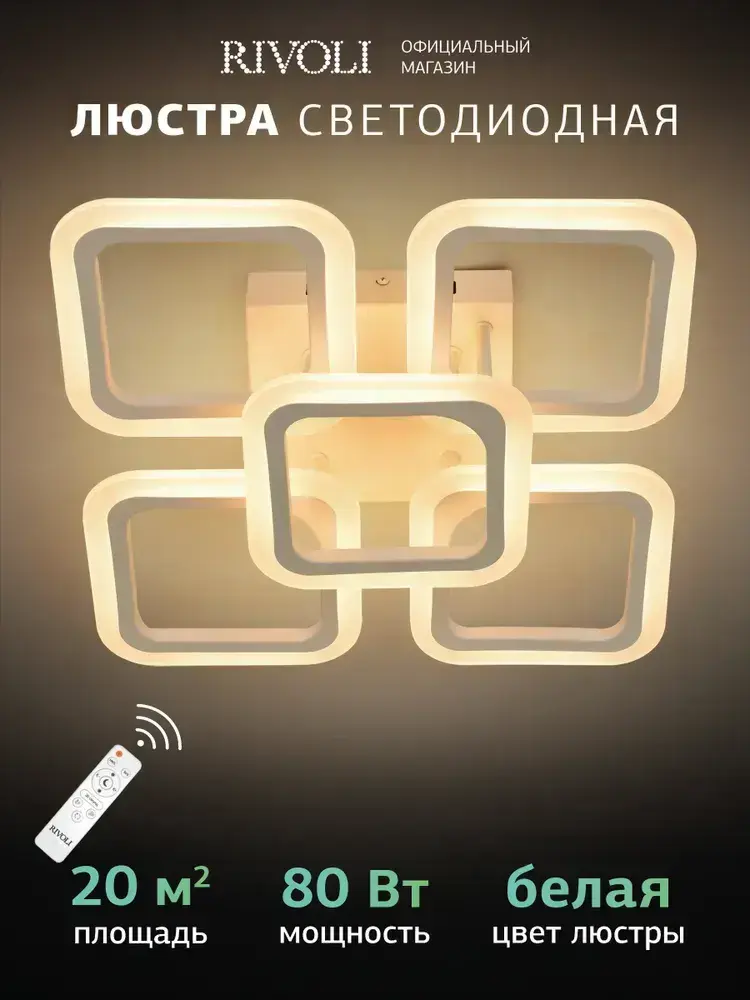 Люстра потолочная светодиодная с пультом ДУ Rivoli белая LED 80 Вт 3000 - 6000 К, светильник на кухню, в детскую, в спальню