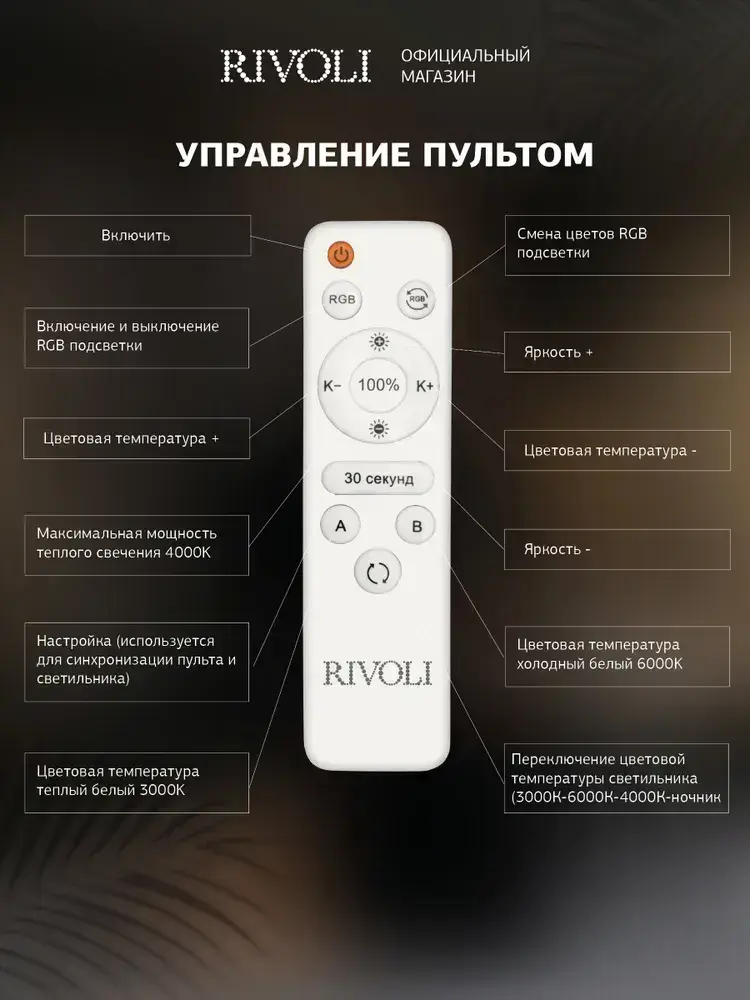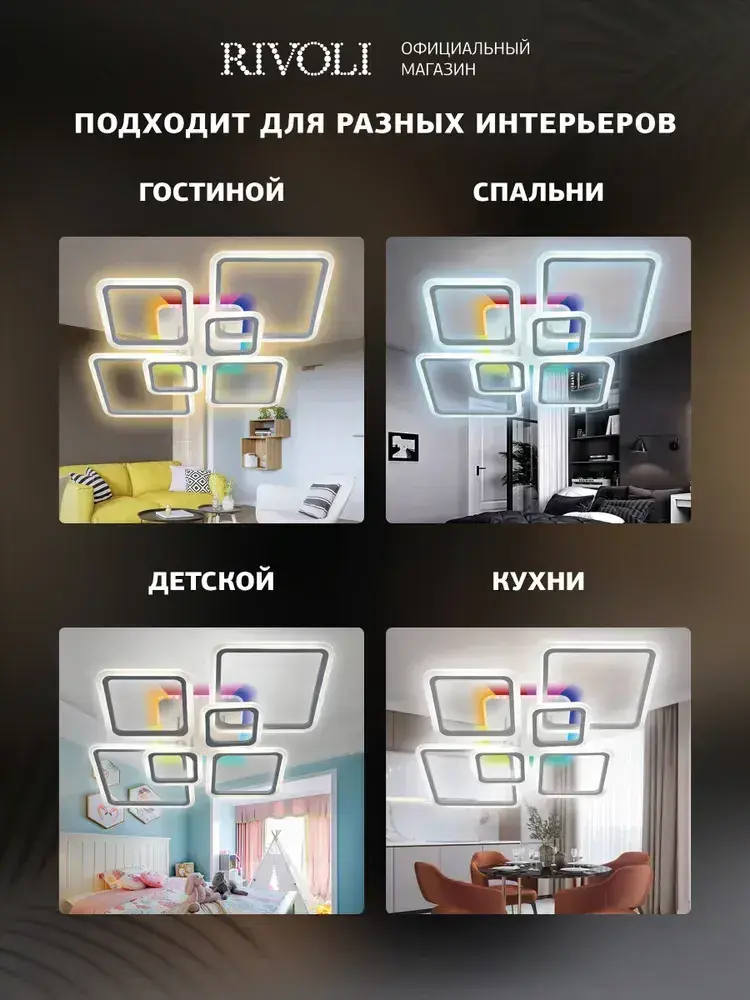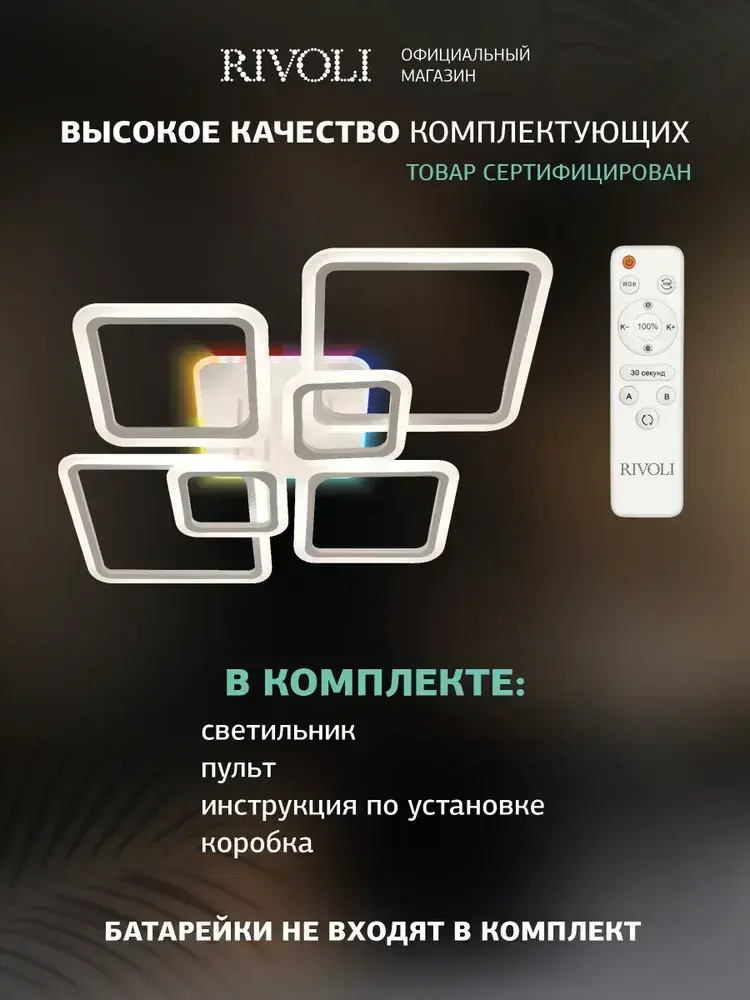 Люстра потолочная светодиодная с пультом ДУ Rivoli белая LED с RGB 180 Вт 3000 - 6000 К, светильник на кухню, в детскую, в спальню