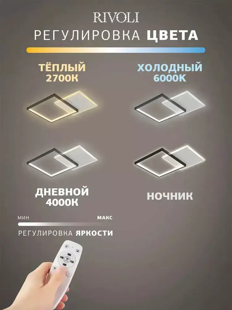 Люстра потолочная светодиодная с пультом ДУ Rivoli черно-белая 74 Вт 3000К-6000К, светильник на кухню, в детскую, в спальню