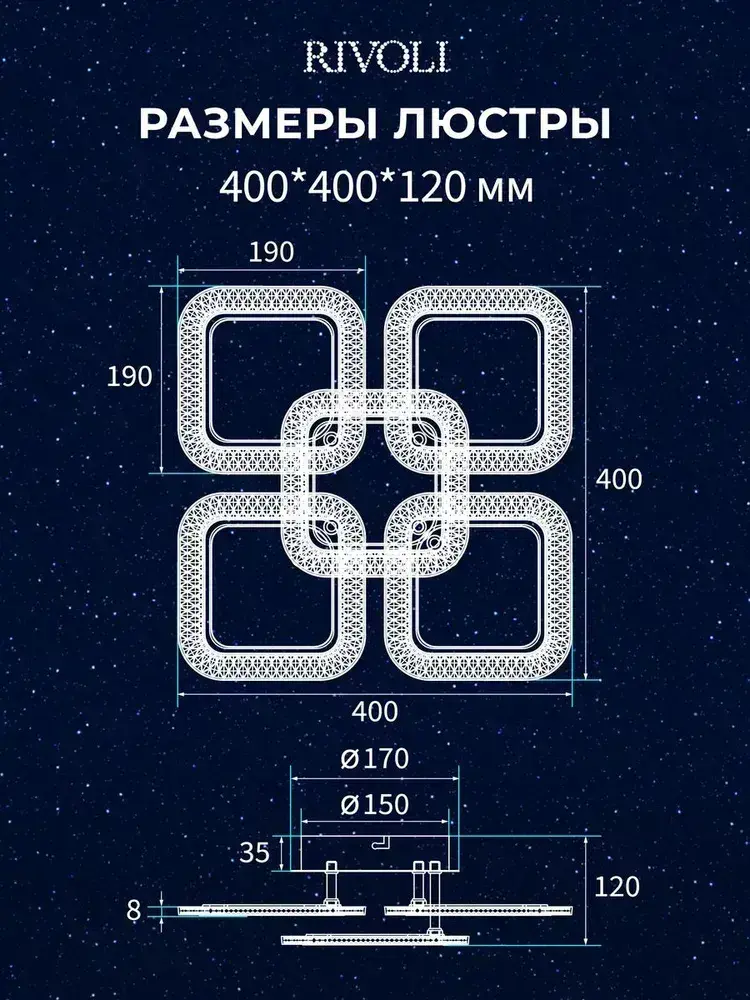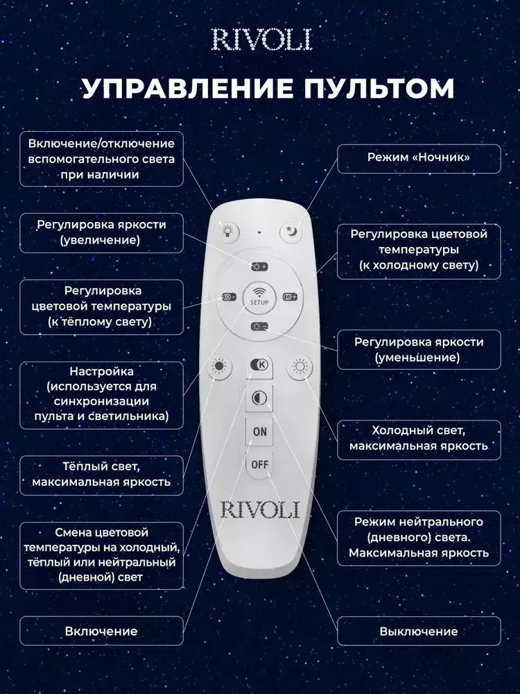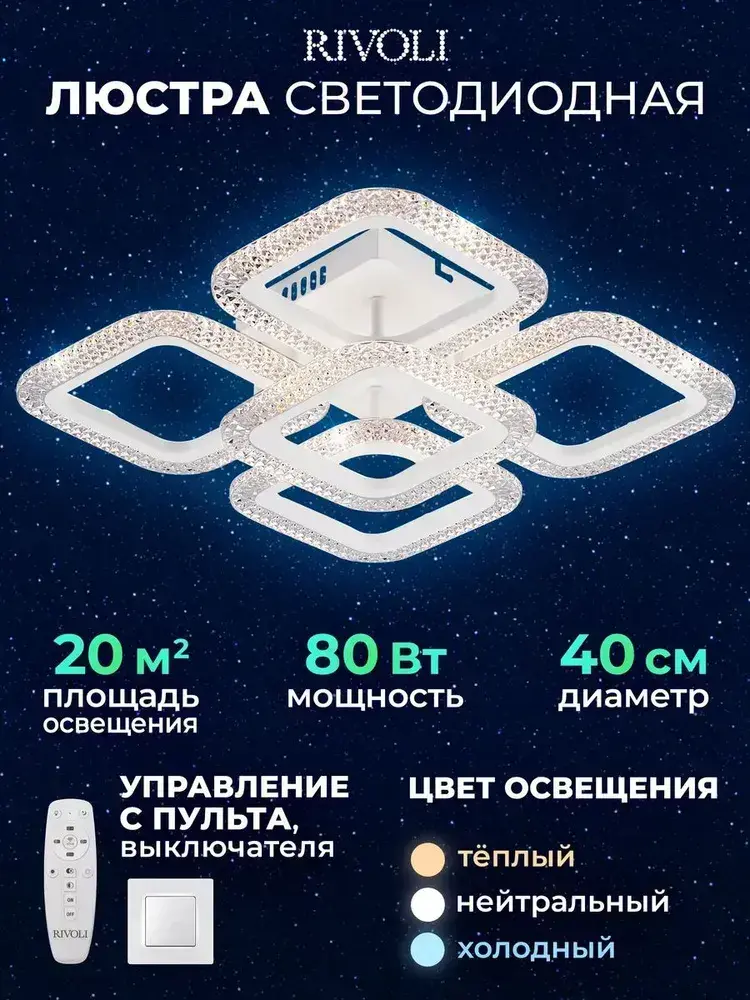 Люстра потолочная светодиодная с пультом ДУ Rivoli Nikki 6112-105 белая 80 Вт LED 2800К - 6200К, светильник на кухню, в детскую, в спальню