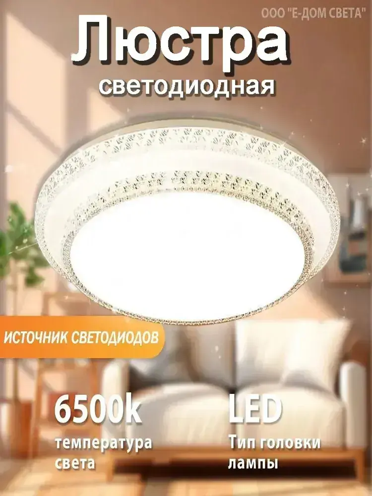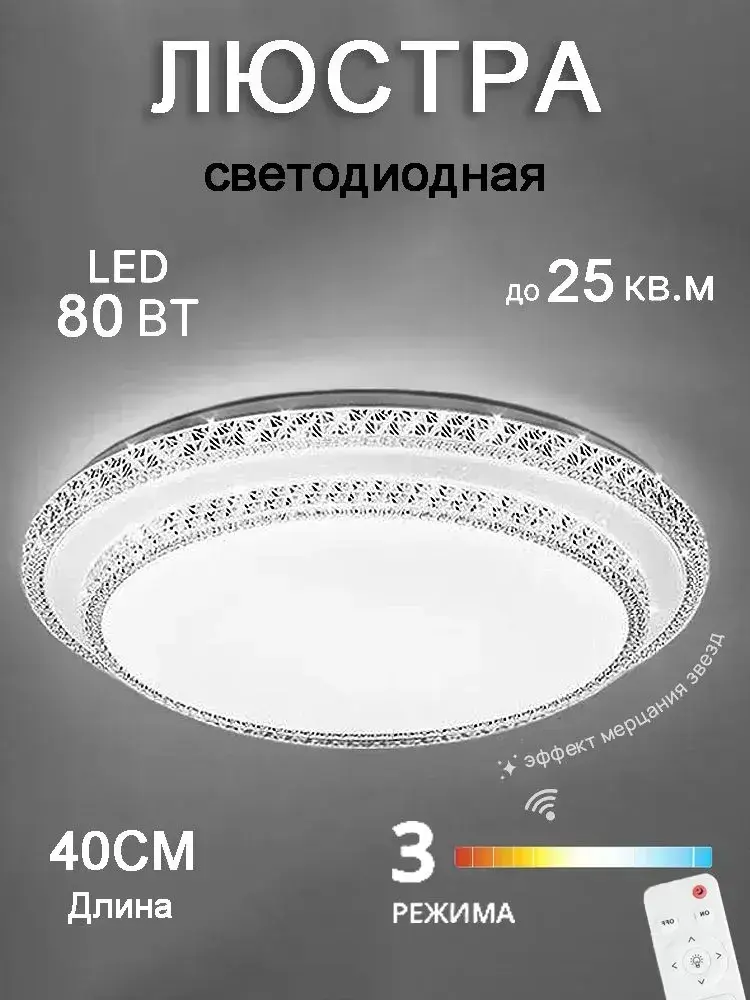 Люстра потолочная светодиодная с пультом круглая, 80Вт