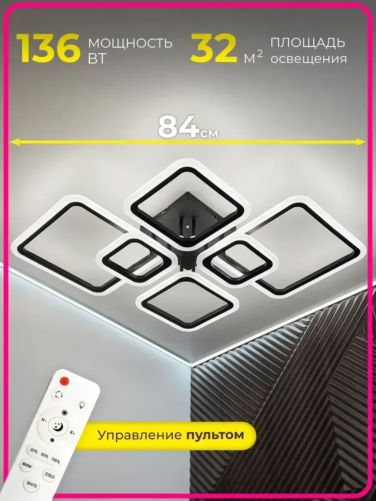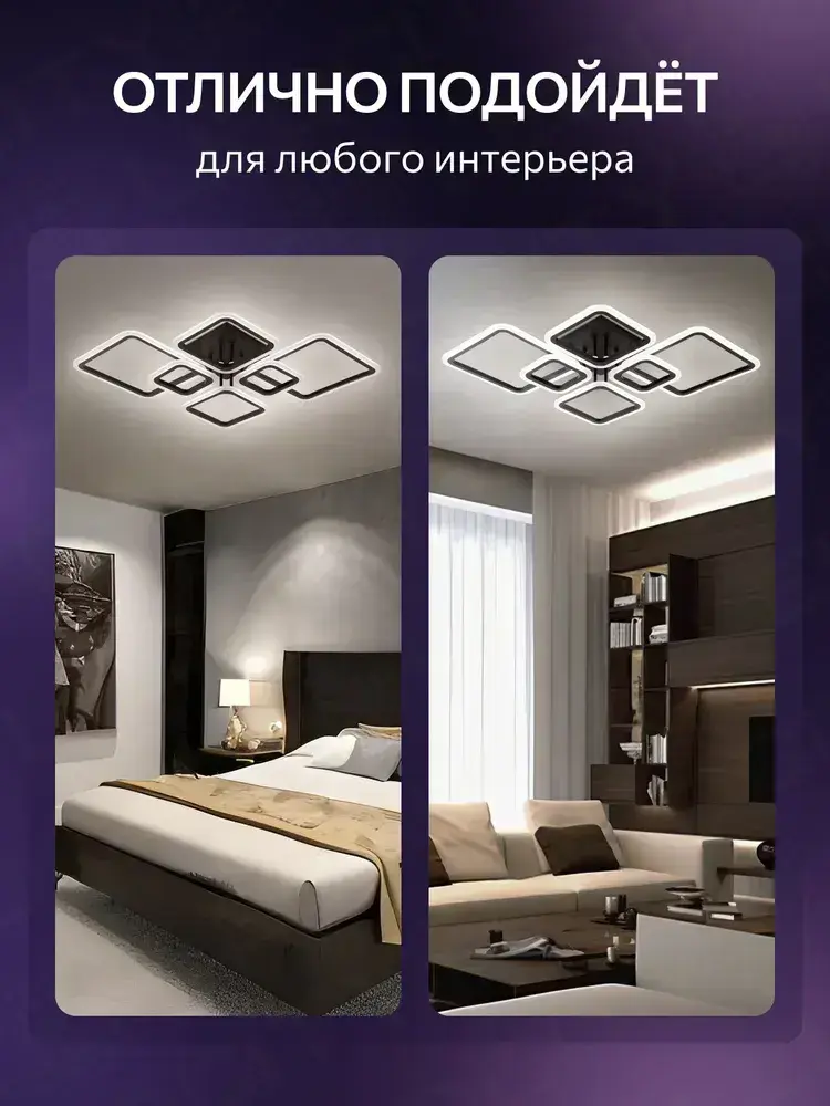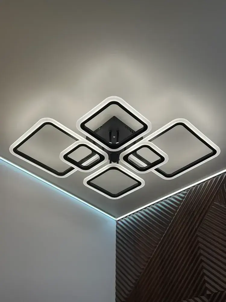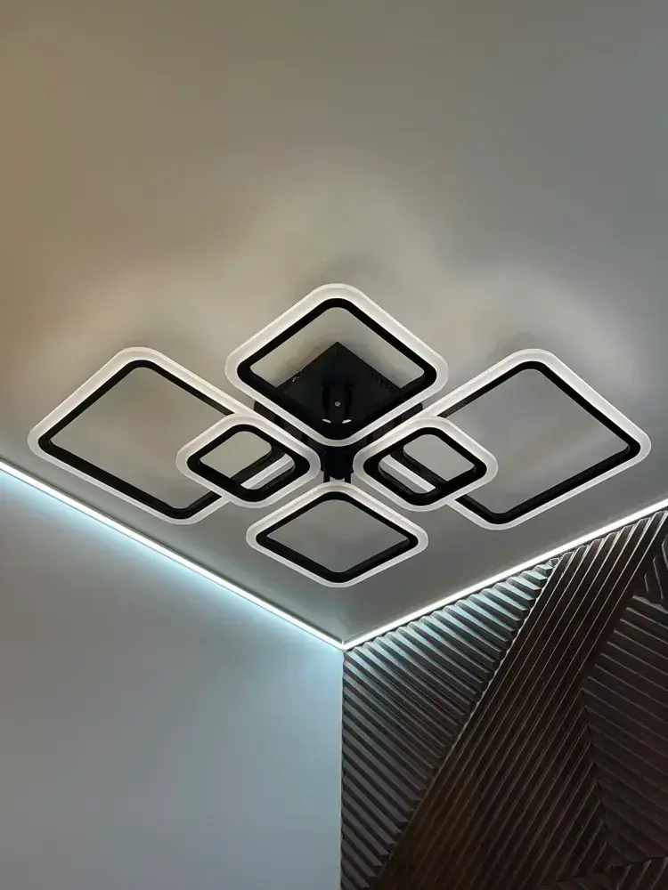 Люстра потолочная светодиодная с пультом, светильник, черная