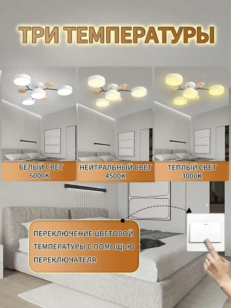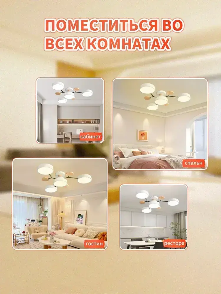 Люстра потолочная светодиодная, светильник потолочный 4 плафонов, 48 Вт, AYHOME