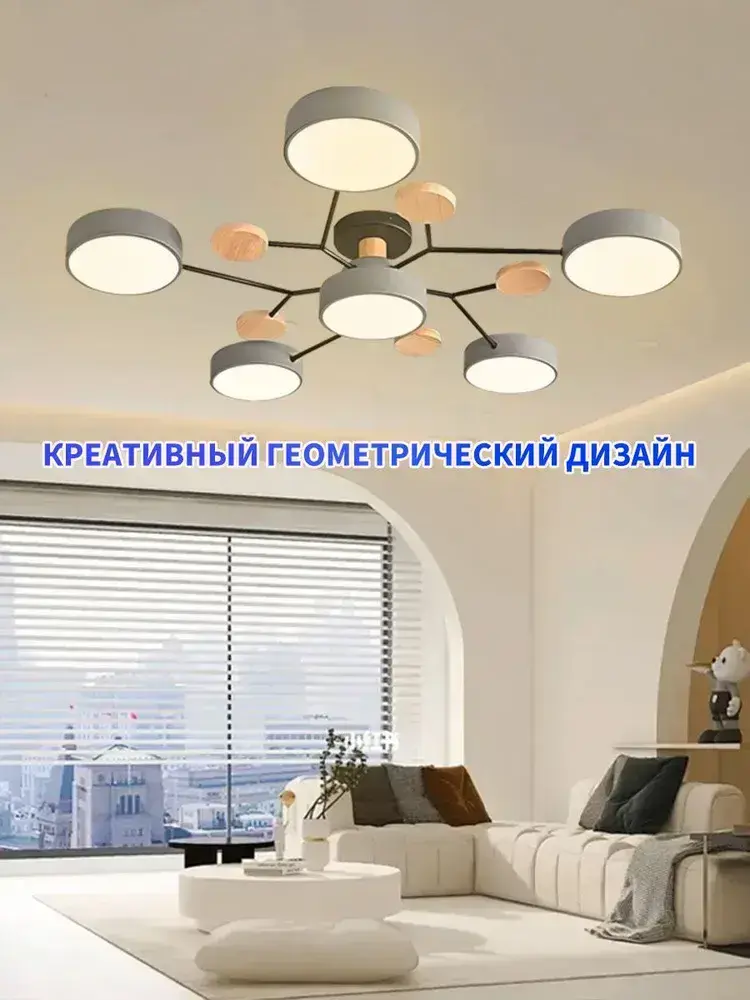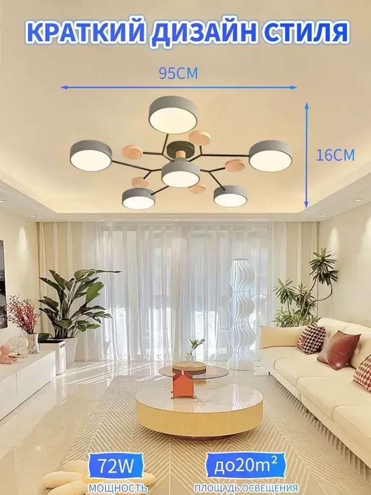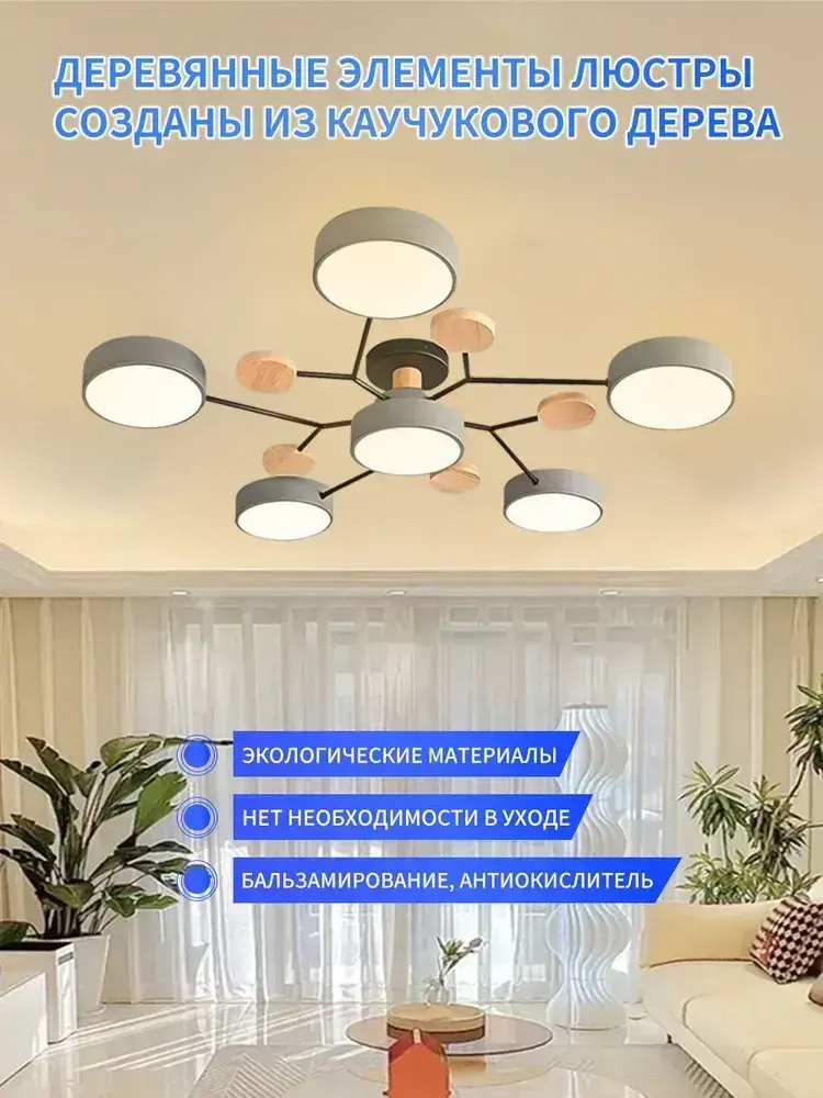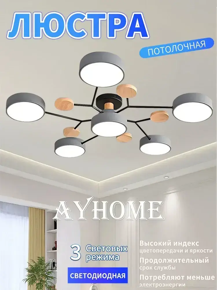 Люстра потолочная светодиодная, светильник потолочный 6 плафонов, 72 Вт, серый, AYHOME