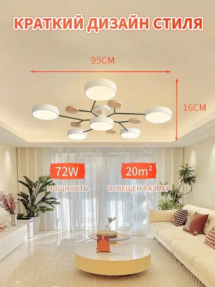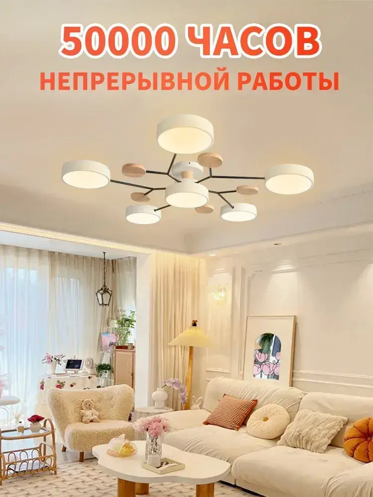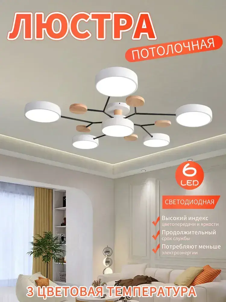 Люстра потолочная светодиодная, светильник потолочный 6 плафонов, белый, AYHOME