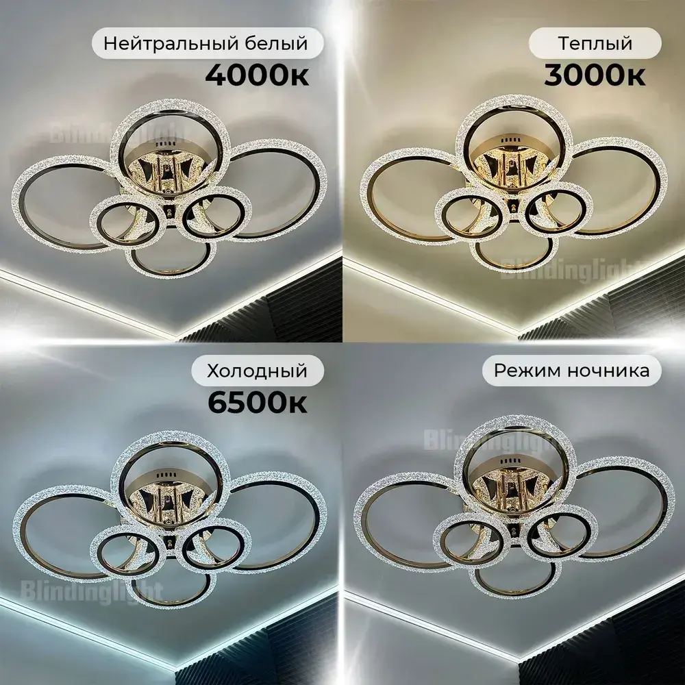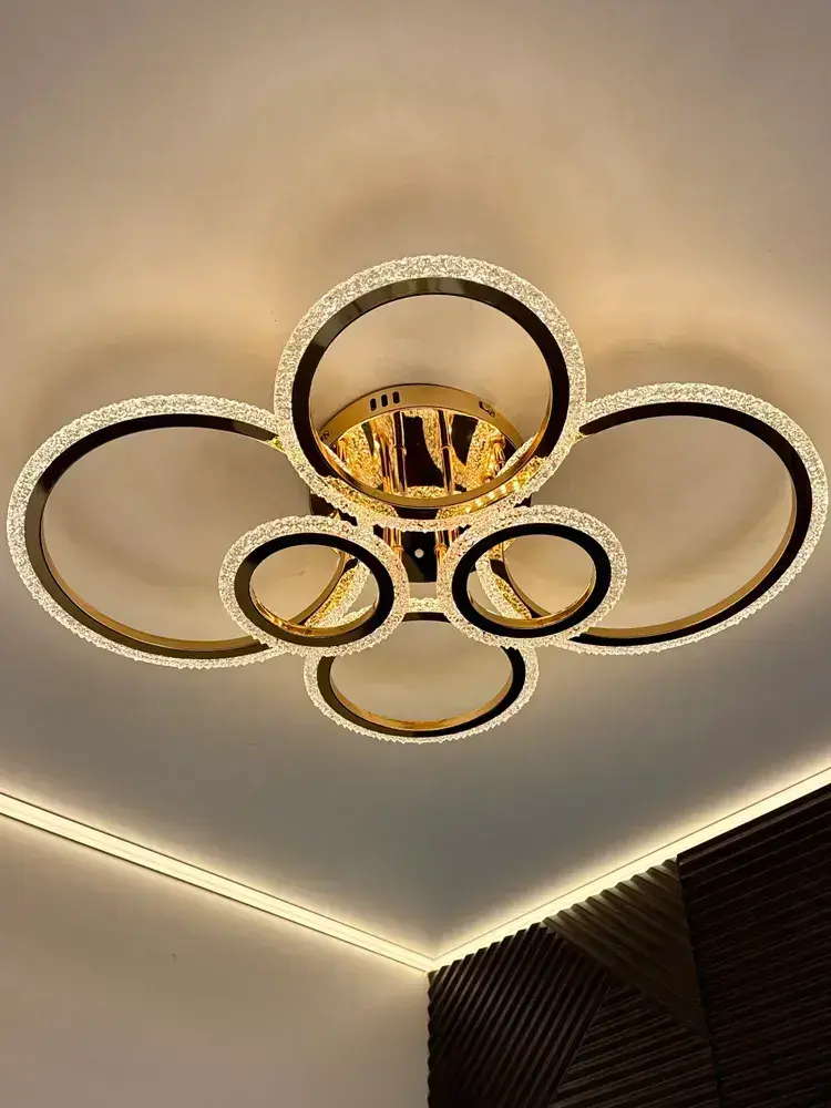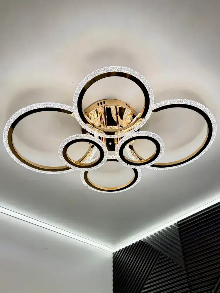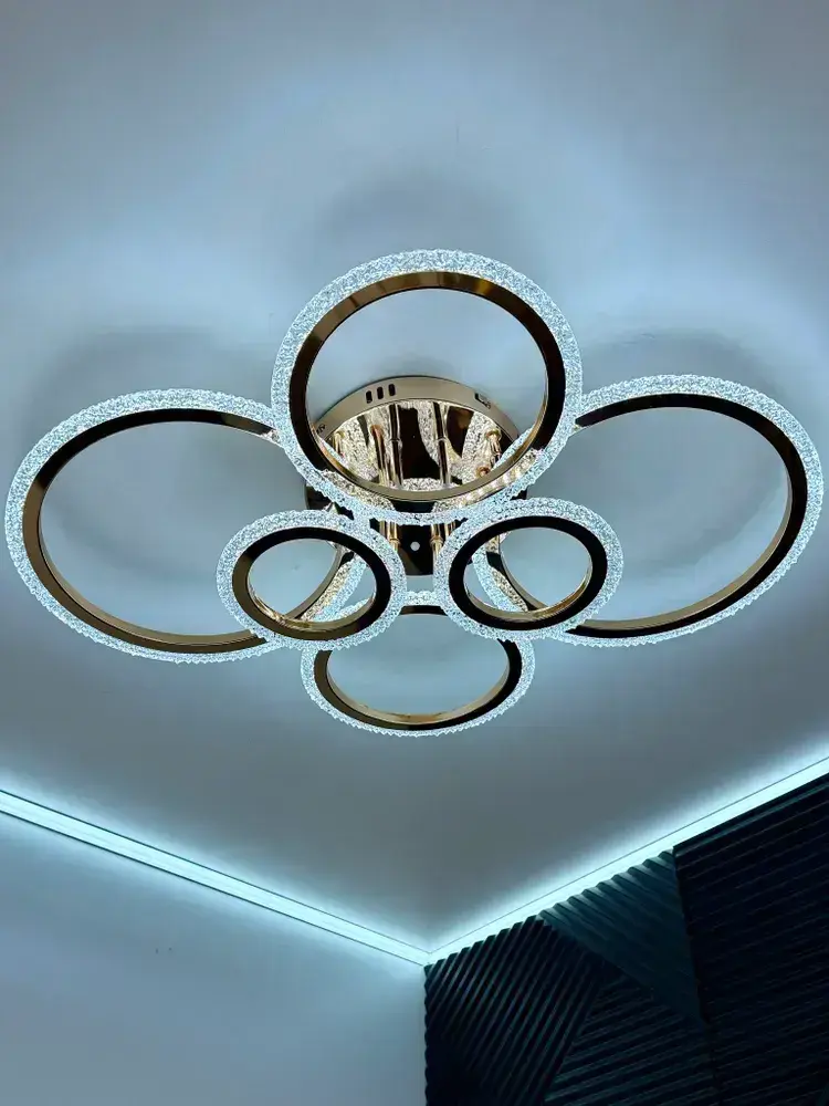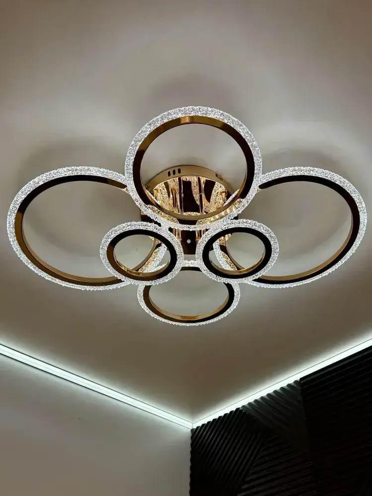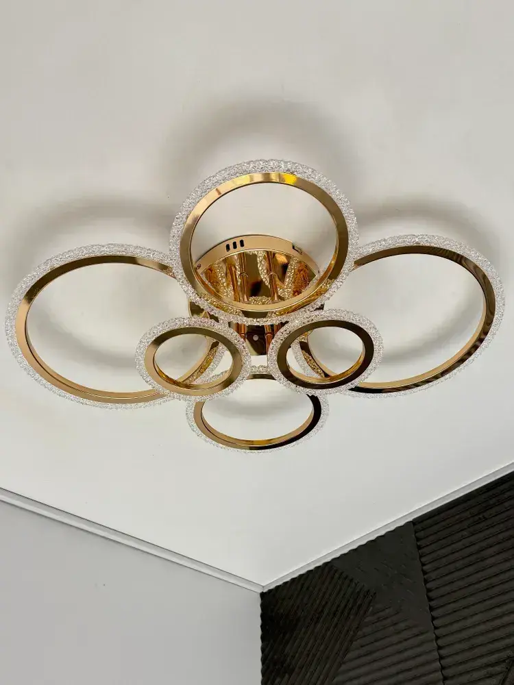 Люстра потолочная золотая с пультом для всех видов потолков, 120 Вт