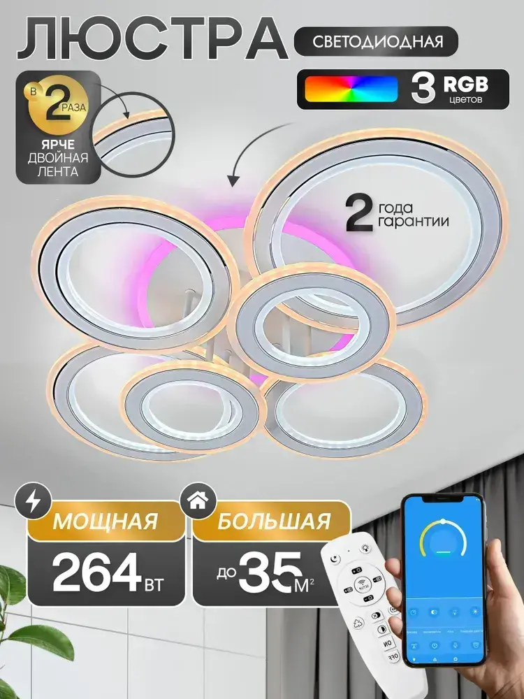 Люстра светодиодная потолочная с пультом AL1808/6 WH, люстра потолочная светодиодная в зал 264Вт