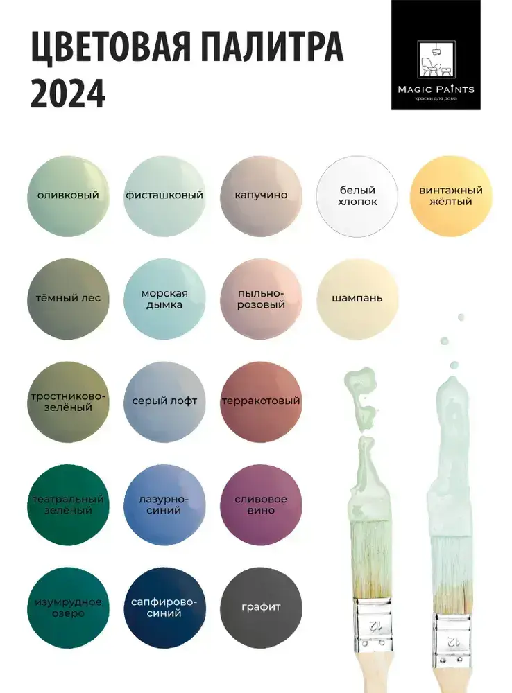 Magic Paints Краска Быстросохнущая, Гладкая, до 90°, Акриловая, Водная, Матовое покрытие, 0.5 л, 0.7 кг, оливковый, светло-зеленый