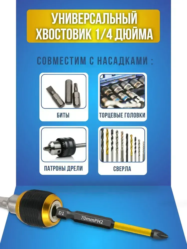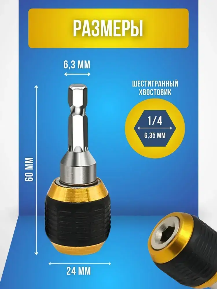Магнитный держатель на дрель для бит быстросъемный, адаптер для бит