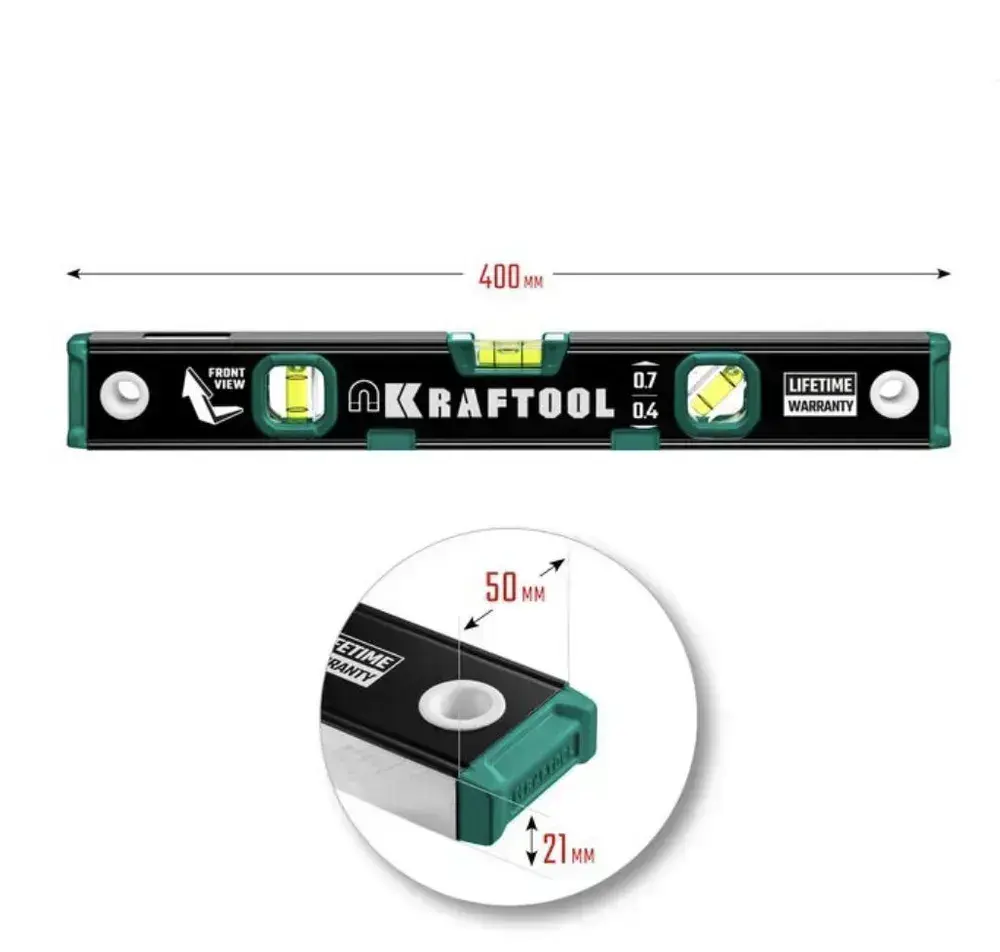 Магнитный уровень KRAFTOOL с зеркальным глазком, 400 мм 34785-40