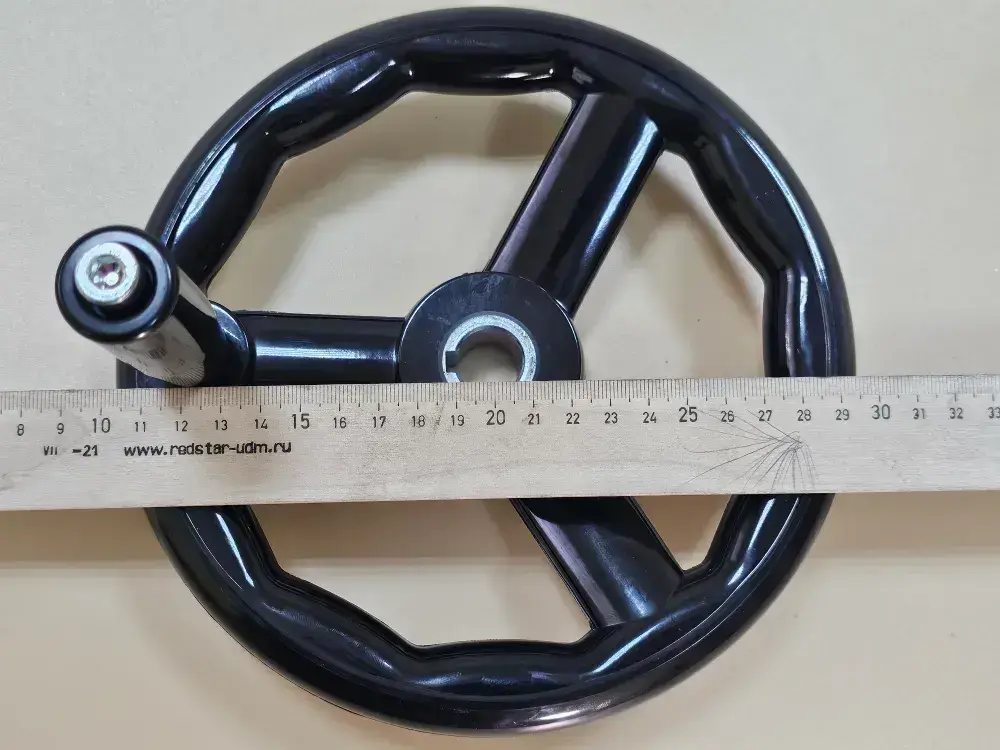 Маховик бакелит 200х18х6мм (Dxdxb) с 3-мя спицами, с ручкой
