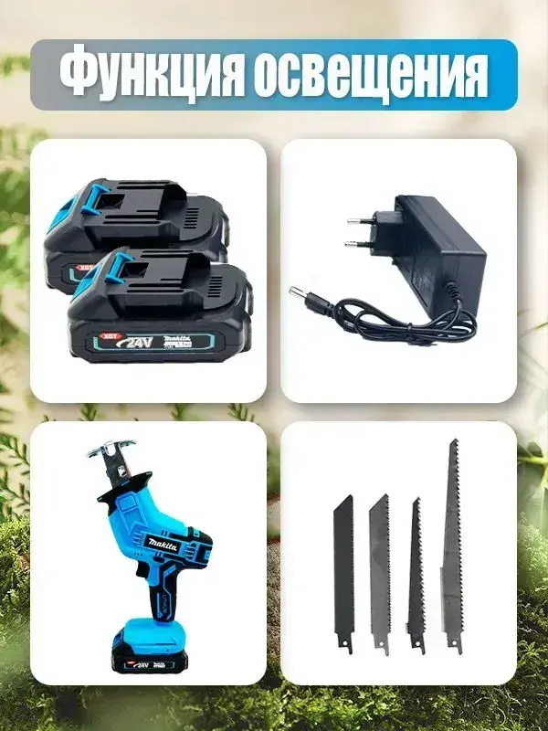 Makita Аккумуляторная электрическая сабельная пила (+4 лезвия для разных видов материалов)
